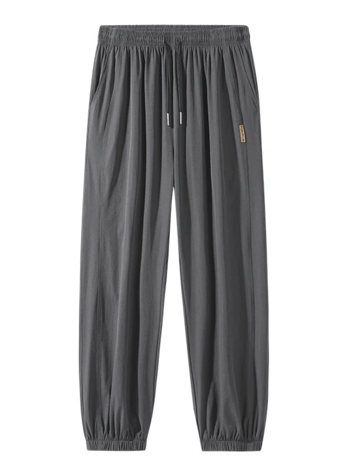 Engineered for breathability and ease, these joggers are cut from ice silk fabric that cools instantly on contact. The smooth, fluid texture feels weightless—no sticking, no cling—just effortless movement, while the relaxed, loose drape pairs perfectly with tapered cuffs for a clean, structured finish.