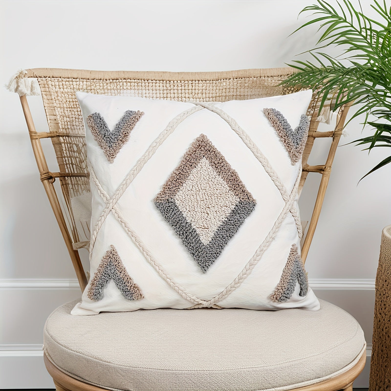 These artisan cushion covers feature hand-tufted embroidery in layered tones, framed with braided cotton rope for added structure. A heavy cotton canvas base delivers a crisp, breathable foundation. Designed for visual depth and contrast, these covers refine sofas, beds, and accent chairs. Ideal for elevated layering in modern, boho, or eclectic interiors.