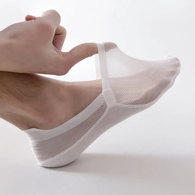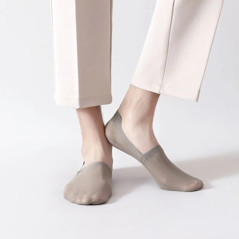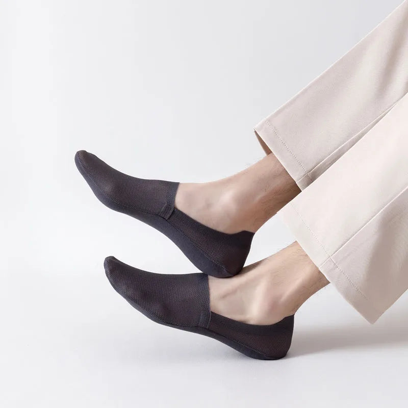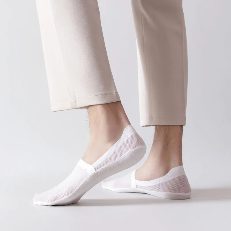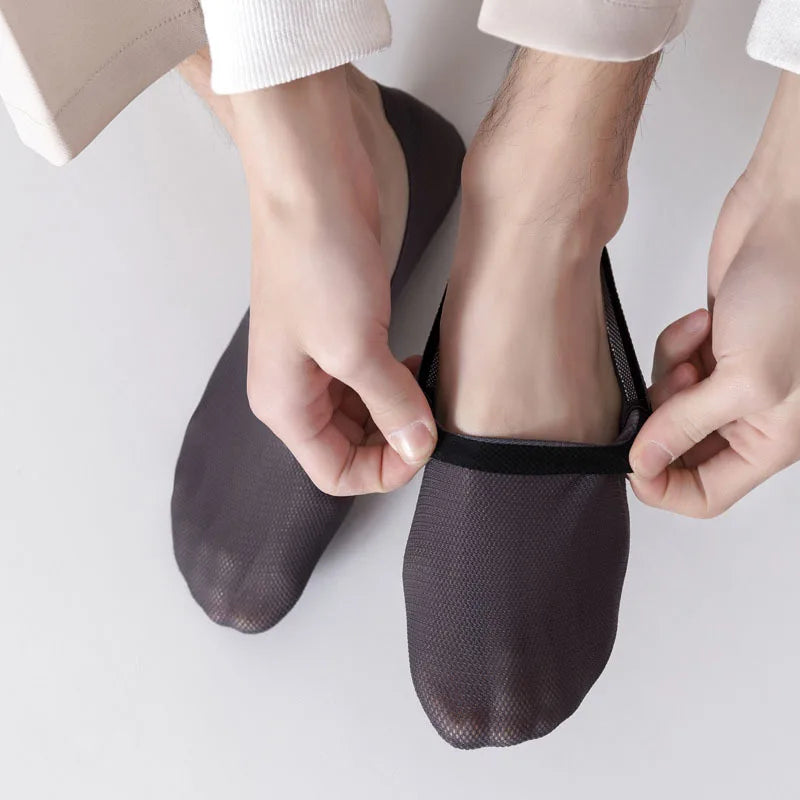 Engineered for total invisibility and all-day hold, these ultra-thin mesh liner socks deliver a breathable, second-skin fit. Stretch mesh keeps feet cool and dry, while a silicone heel grip prevents slipping or bunching. Finished with seamless edges for a smooth, pressure-free feel. Whether worn with loafers, sneakers, or dress shoes, they stay out of sight and perfectly in place.