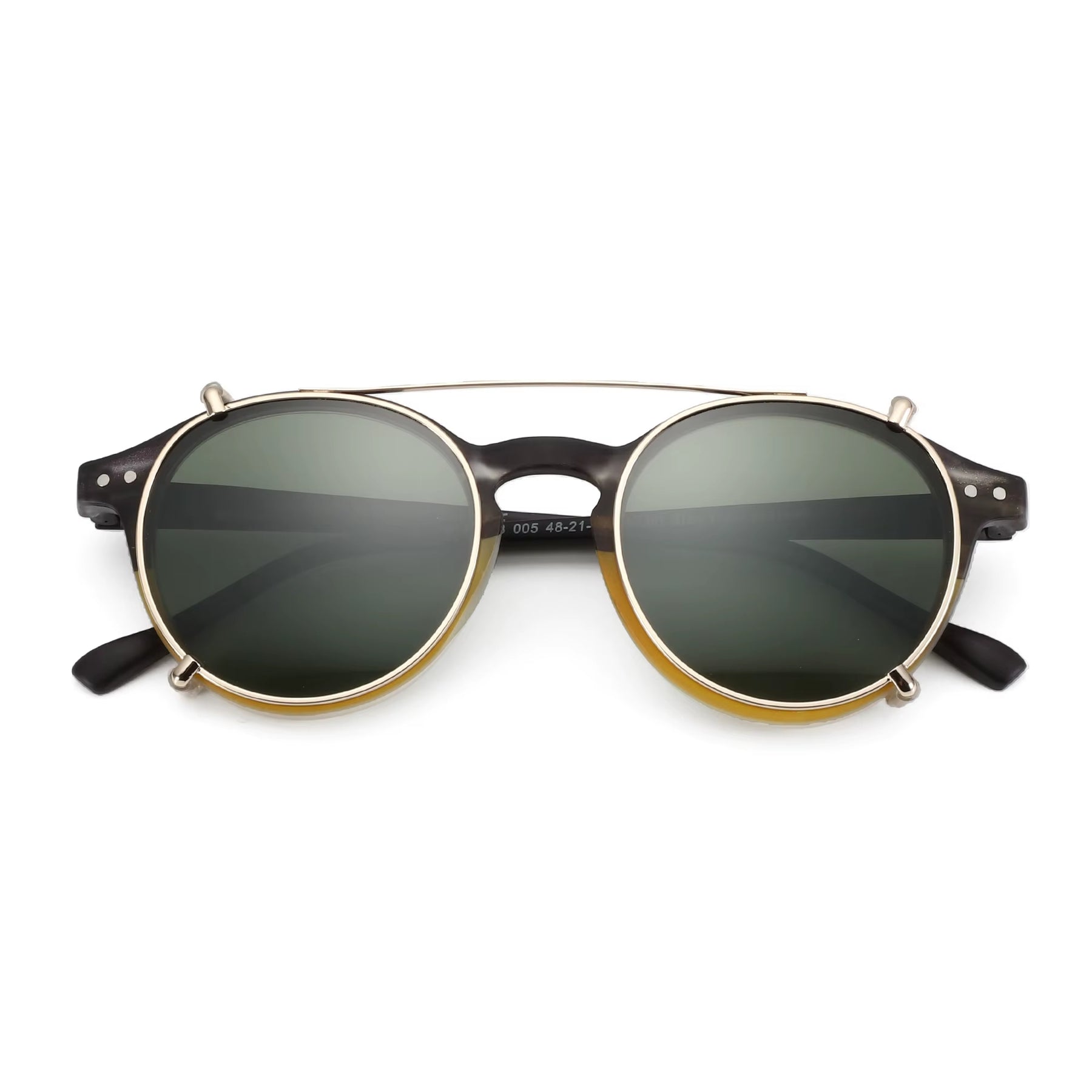 These steampunk inspired tech-flip sunglasses are your double life in one frame. Anti-blue light lenses guard your eyes from digital fatigue, while snap-on polarized shades block glare with effortless swagger. Day or night, screen or sun, these polarized frames flip your world from digital strain to style domination in a snap.