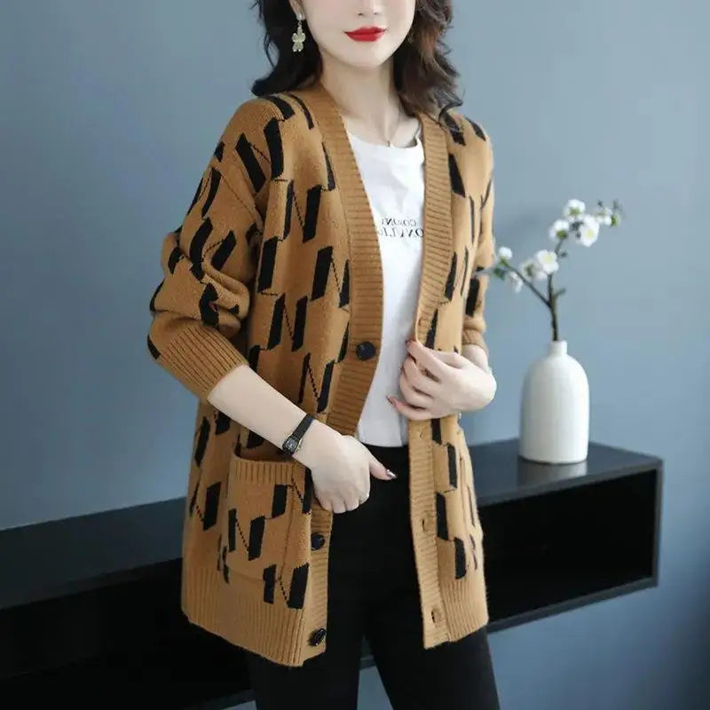 Crafted from ultra-soft jacquard knit, this cardigan pairs bold geometric structure with a refined, oversized silhouette. A deep V-neckline and button front create strong, minimal lines, while dropped shoulders and patch pockets introduce an effortless balance. Designed for fluid layering and all-seasonal wear, it’s a modern staple with elevated edge.