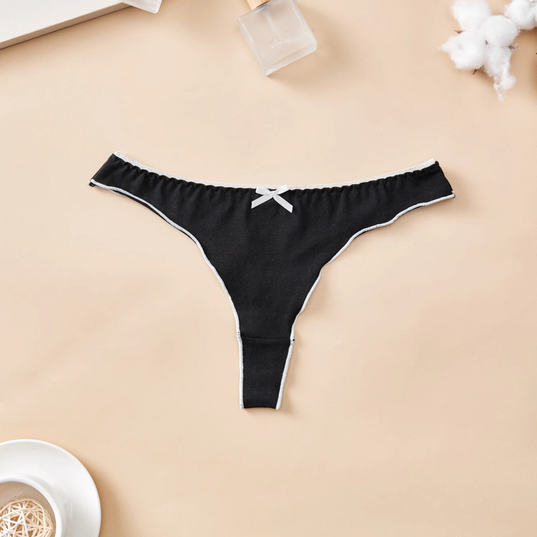Ultra-soft, curve-hugging, and effortlessly flattering—this thong set is designed to enhance your shape with a barely-there feel. Made from breathable stretch cotton, it features a seamless back for a smooth, invisible fit under anything. The mid-rise V silhouette elongates the body, while contrast edging and a satin bow add a clean, elevated finish. Perfect as a daily essential or a discreet layer beneath sheer styles.